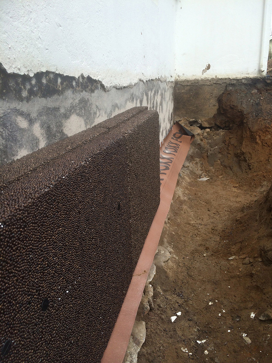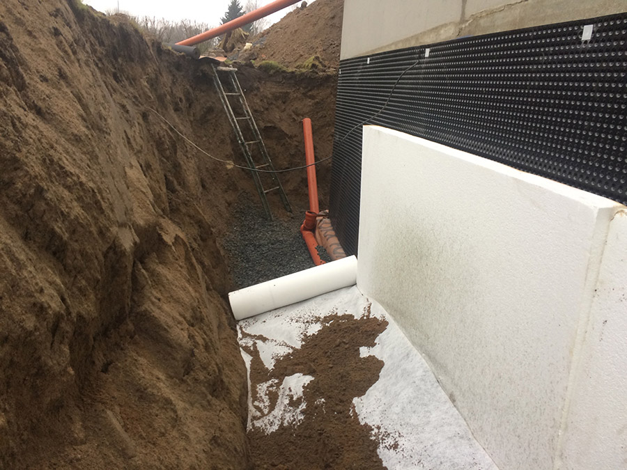 På så sätt skyddas husgrunden från vatteninträngning när marken blivit mättad efter ett långvarit regnande.