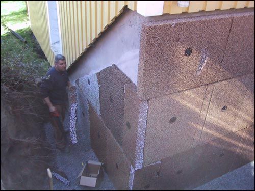 Sockelns nedre del skall tjäras för att fukt ej skall tränga igenom. Utskjutande partier på husgrunden tjäras också som extra säkerhet.