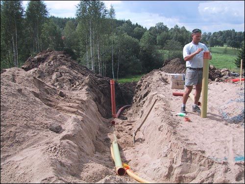 Gjutning av bottenplatta med Sundolitts L-element. Isolerad och med golvvärme. Objekt: Dalby Skåne.